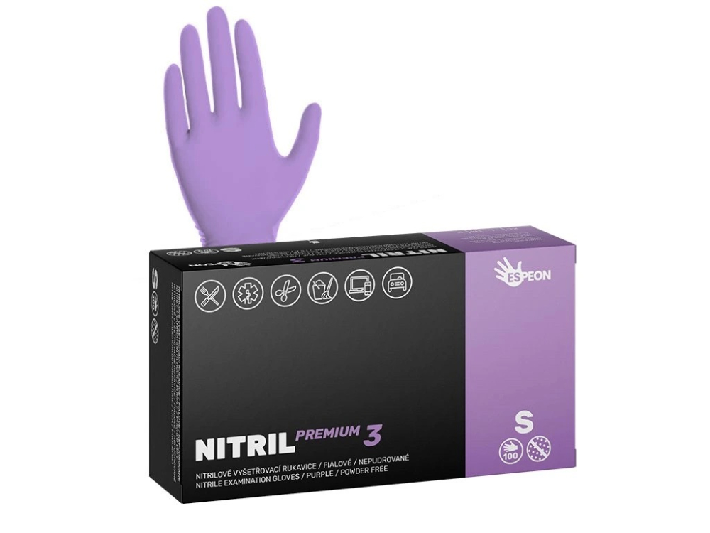 - Nitrilové rukavice NITRIL PREMIUM 3 100 ks, nepudrované, fialové